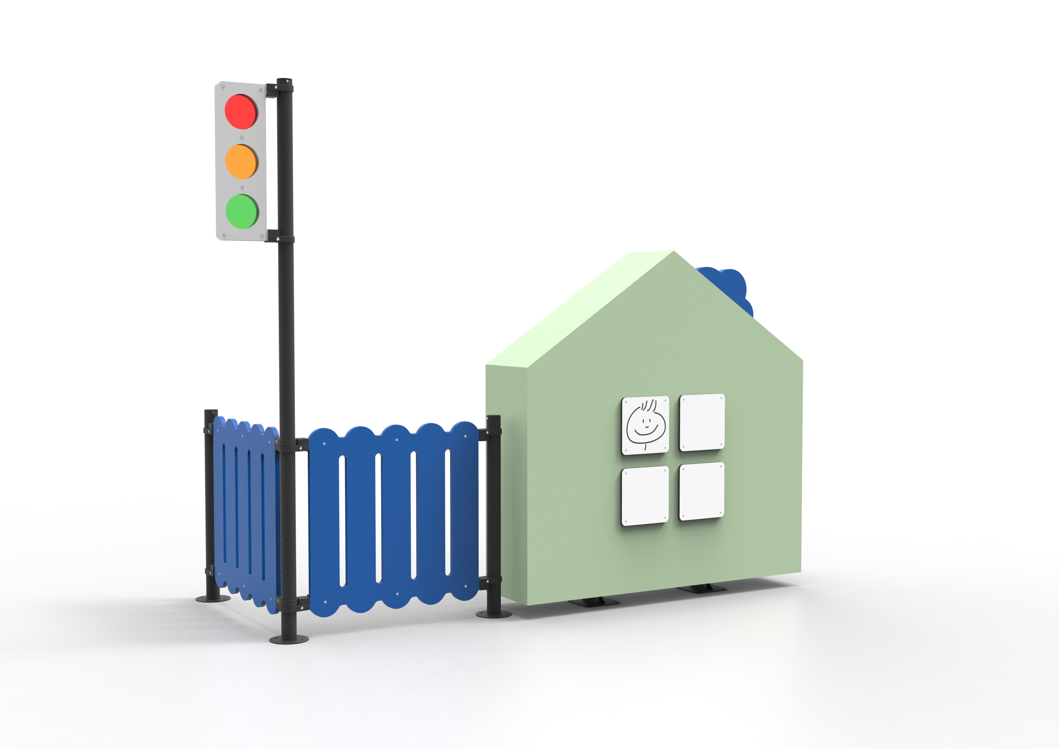 Kids City includes elements based on architectural forms (houses, stations, town halls ...) and urban planning (squares, streets, crossroads ...) With these pieces a small city is configured, a city that invites children to become aware, during the game, of the elements that they pass by during their daily activity. Sometimes, these animal forms are reshaped and become a support for small climbing walls. This miniature city invites children to reinterpret their experiences in the form of a role-playing game. As a schematic scenario, this backdrop allows children to interact with each other while providing different levels of play to coexist harmoniously, in the same way that several activities overlap at the same time in the cities. In addition, the Kids City range is suitable for introducing children to the notions of education in road safety, with the game as a starting point for learning some basic notions such as waiting before crossing, respecting other pedestrians, etc.