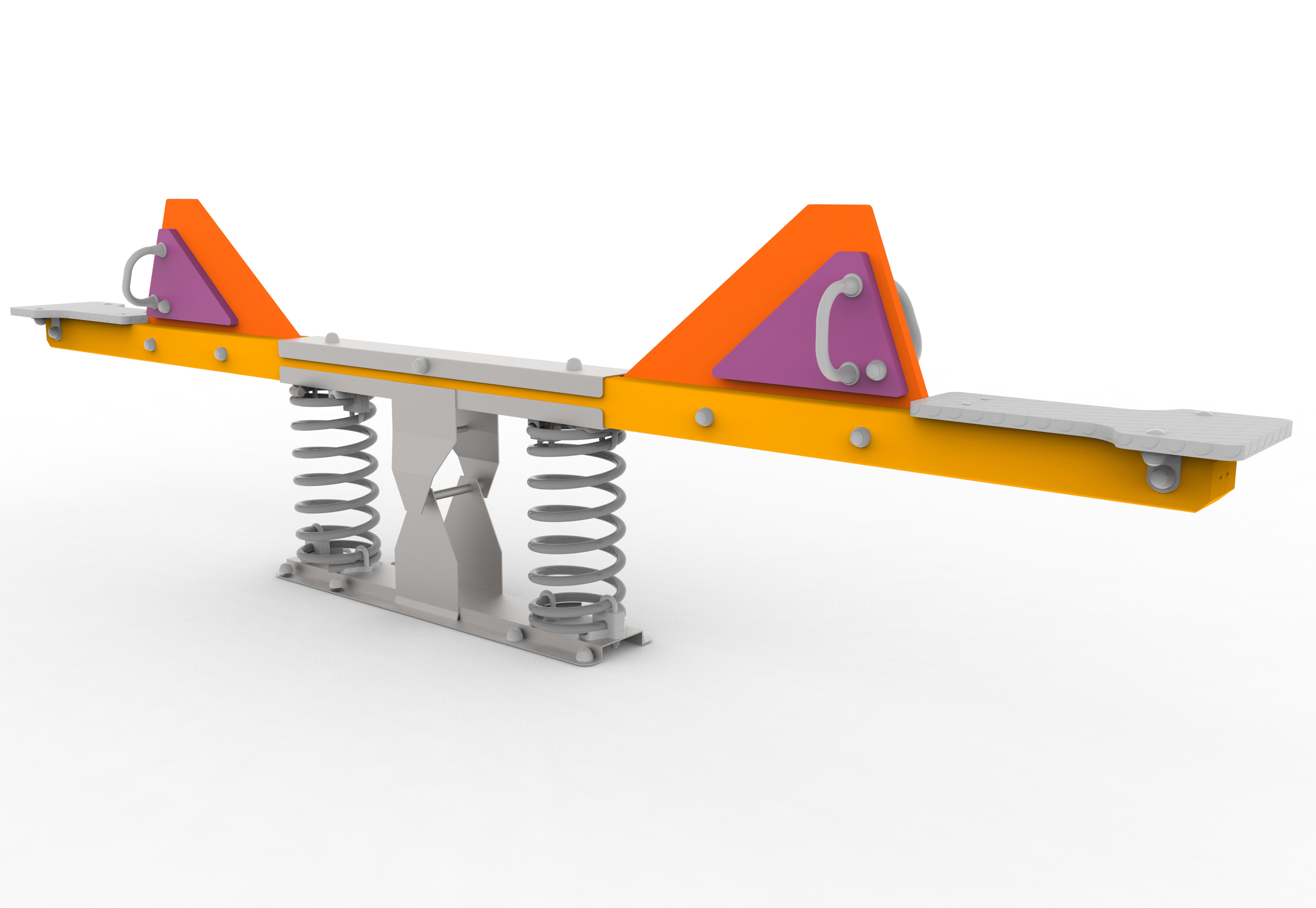 From a theoretical point of view, Fusión is our most eclectic range. It is a transition design, aimed to meet the needs of children of different ages, thus increasing and varying the possibilities of play. For this reason, we opt for the geometry of triangles, circles and squares, which refers us back to the basic forms of construction games, while opening new possibilities through abstract interpretation. The color opens up to a more elaborate palette, suitable for all ages and elegantly integrated into urban environments. The range has the possibility of opting for wooden or aluminum posts. The familiar elements acquire greater complexity, with climbing walls, suspended walkways or nets. Also, they can be combined with several types of swings included in the Complementos range. Halfway between mechanical devices and the typical elements of an adventure story, Fusión demands a greater degree of attention to its users. The game ceases to be an almost automatic activity for the child and becomes a reinforcement of self-esteem with the spirit of reaffirmation. Also, and as a novelty, there is the alternative of incorporating rotational molding slides, instead of the traditional slide made of stainless steel.