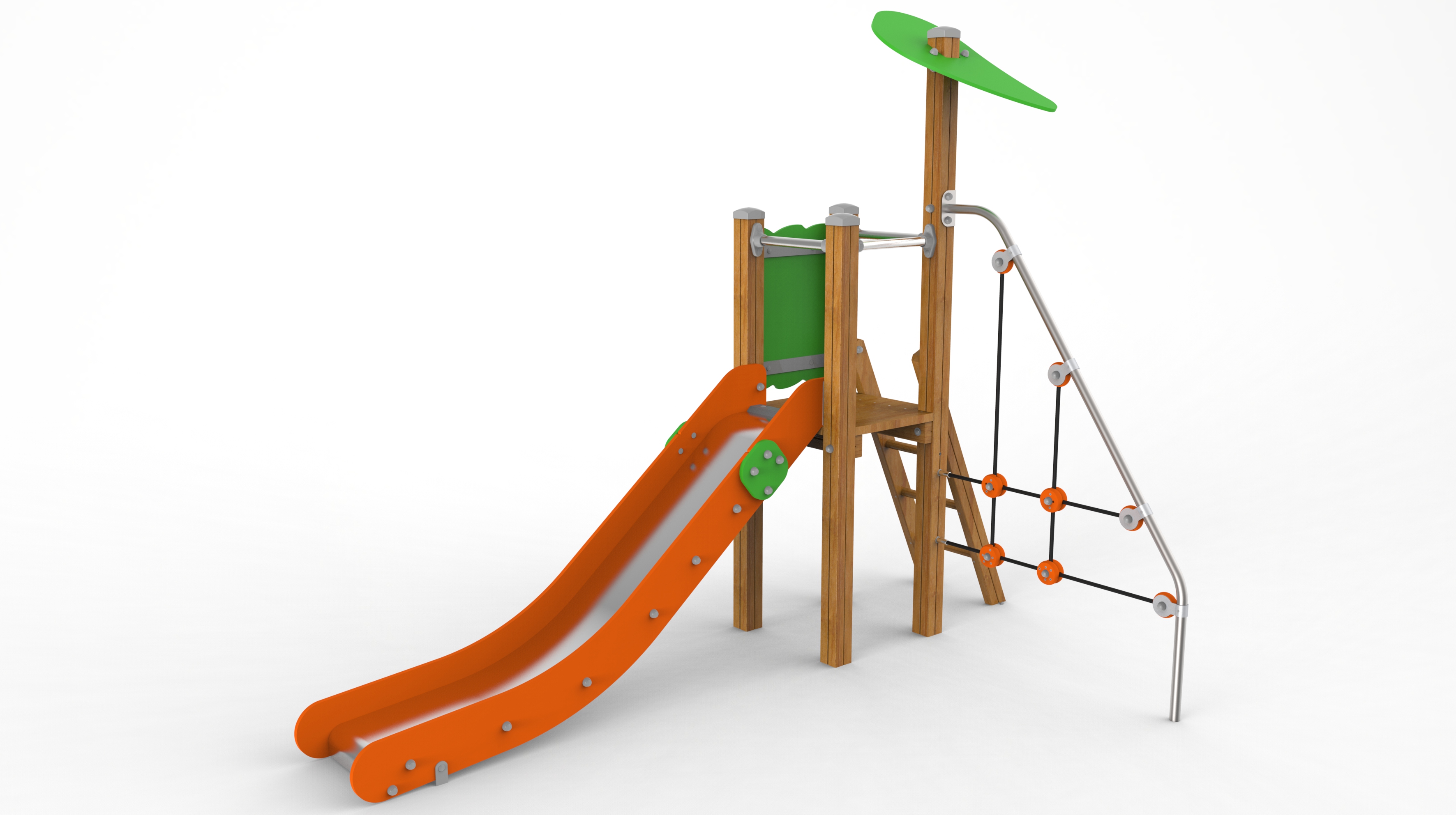 Nice product line is based on the welcoming forest huts, that we all associate to the primitive refuges in which the rules of construction born of nature itself. We thus seek the final objective of transporting children’s’ imagination to these landscapes. This product line includes multiple combinations of modular sets through which toddlers are able to explore the play structures in a different way. Combinations of one, two and even three towers with or without roof can be found, along with other elements such as springs, little houses, independent slides and swings. The kid can thus opt between several alternative routes, as these structures include different accessories allowing the easy and quick access to the play structure. This line results in an esthetic, easy and economical solution, with which to be able to create quality spaces for children.