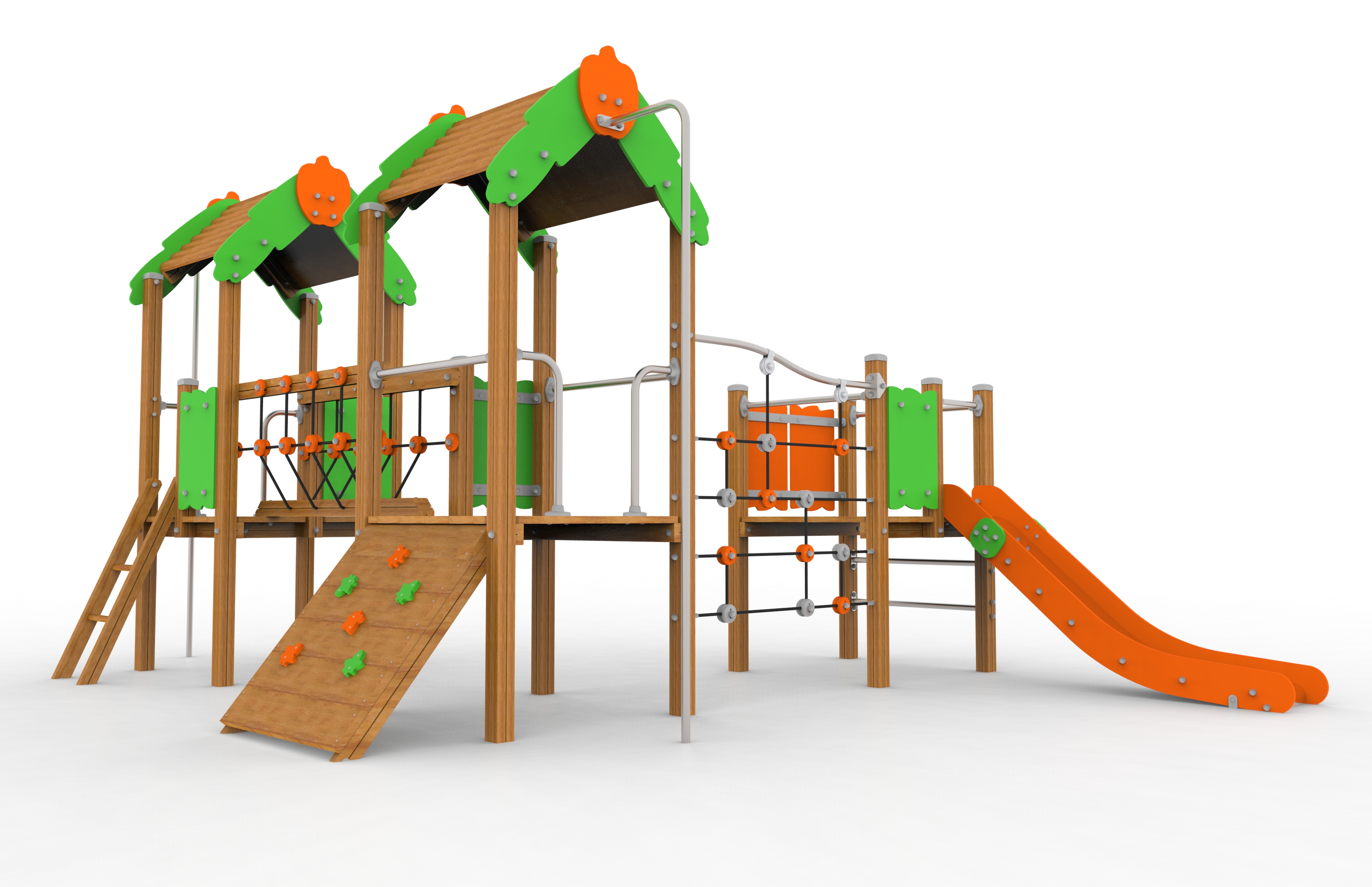 This product line includes multiple combinations of modular sets through which toddlers are able to explore the play structures in a different way. Combinations of one, two and even three towers with or without roof can be found, along with other elements such as springs, little houses, independent slides and swings.
