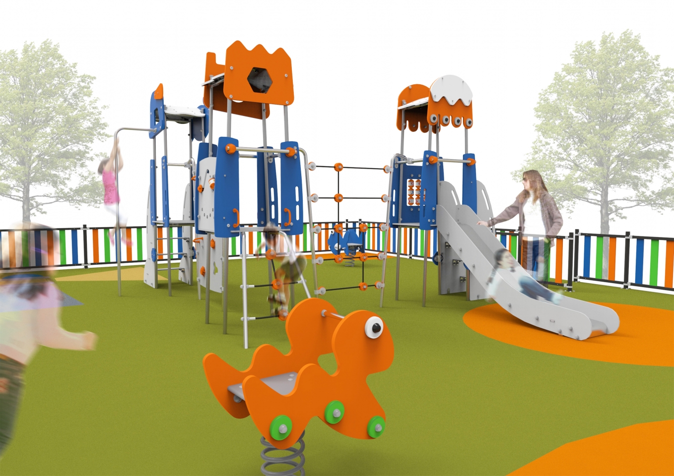 Its play elements with figurative funny forms like jellyfish, fish, castles, etc. allow children to assume roles and create their own adventures.