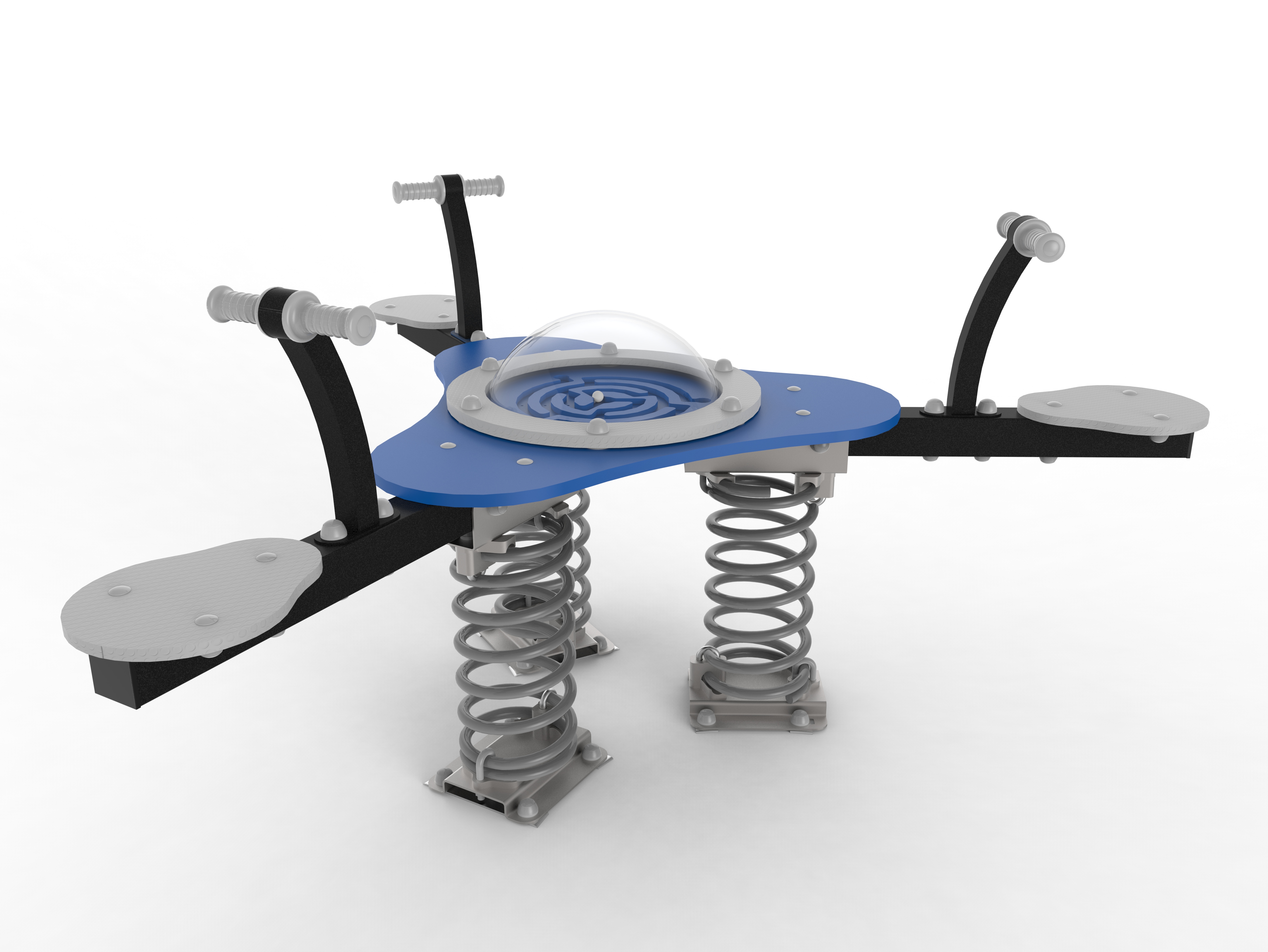 As children grow, they demand a greater role in game areas. The elements that most appeal to them are those that avoid figurative designs and that require the use of more skills. This allows them to test their dexterity and to feel that in each attempt they are overcoming a new challenge. Our Dinamix range, directed towards kids up to 14 years old, is based on pure geometric shapes such as arcs, radii, and curves, which are oversized to give strength to the whole and reinforce the profiles. The elements are adapted to the new capabilities, thus introducing parallel bars, climbing walls or suspension bridges. Their use, less guided than in previous stages of development, opens different possibilities depending on the ability of the user, while always respecting the highest European safety standards. It is a range that is especially resistant, designed to withstand the demanding use of children of this age. The dark tones and sober color palette as the current leading thought of psychopedagogy advises is appropriate come in two combinations: gray / navy blue or light blue / orange. That is why Dinamix integrates harmoniously in areas of rigid architecture, adding a touch of life to previously unattractive environments. Also, and as a novelty, there is the alternative of incorporating rotational molding slides, instead of the traditional slide made entirely of stainless steel.