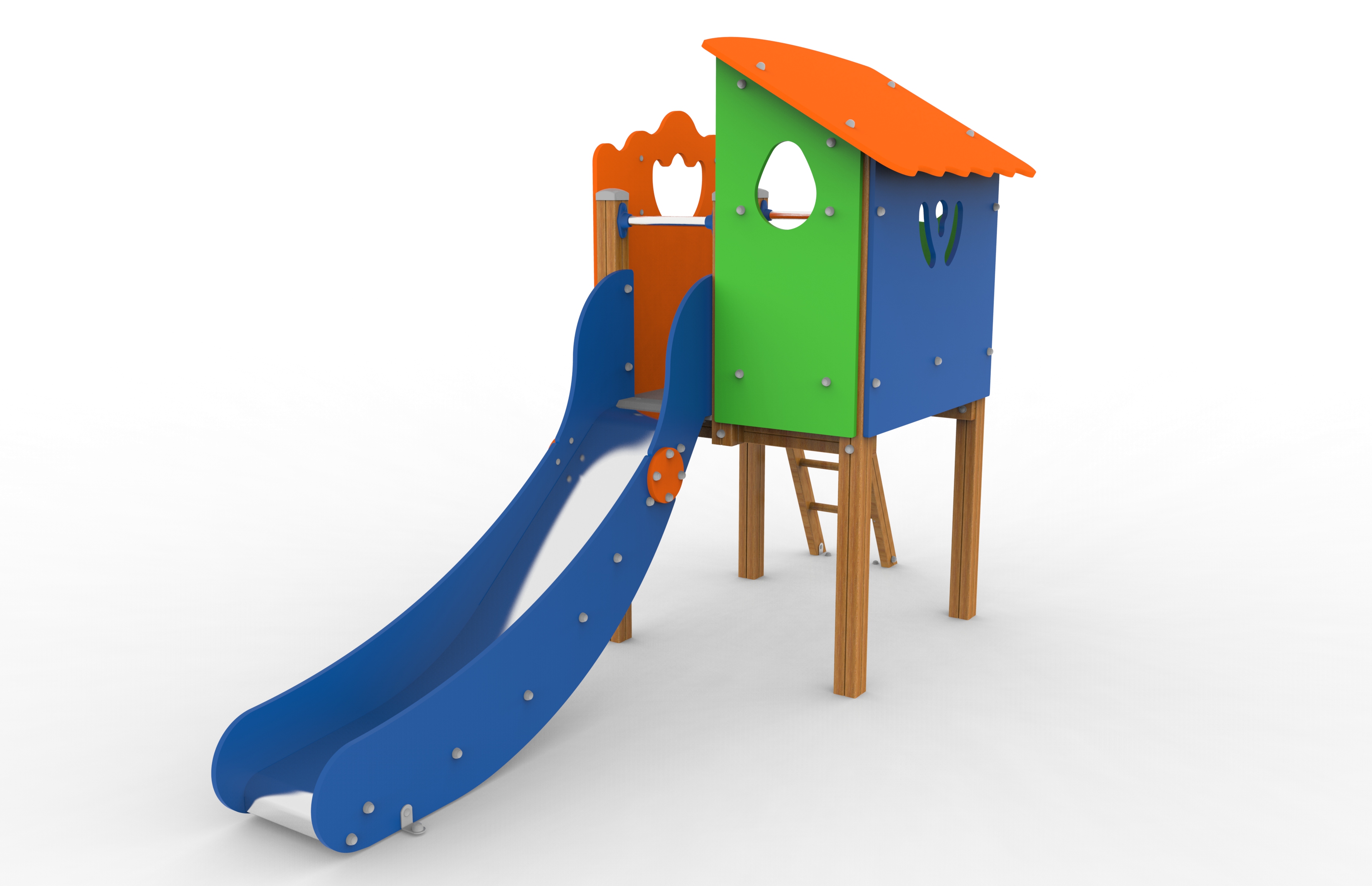 La gama Cómic es un buen ejemplo de aplicación de nuestro principio rector, que considera que la pedagogía debe guiar el diseño. En Galopín, la pedagogía es lo primero, y Cómic es una gama pensada para acompañar todas las etapas del desarrollo infantil, desde la infancia temprana hasta los 14 años. Con este punto de partida, Cómic presenta un conjunto de juegos basado en un diseño sencillo y atractivo, que se adapta sin esfuerzo a las etapas del desarrollo. Para reforzar su aprendizaje, esta gama recurre a un lenguaje formal similar al que los niños encuentran en las actividades escolares, o en los libros y juguetes que tienen en sus hogares. Porque el juego al aire libre, sobre todo en el arranque de la infancia, debe integrarse en los procesos de aprendizaje y reforzarlos de manera armónica. Para los más mayores, ofrece estructuras con redes o barras de bomberos. También se puede combinar con la gran variedad de columpios. Con sus colores primarios, la posibilidad de contar con postes en madera o aluminio, y un diseño figurativo sencillo, Cómic familiariza a los niños con formas como animales o casas, al tiempo que les propone espacios adecuados para interactuar entre ellos y avanzar en sus procesos de socialización. Además, y como novedad, se dispone de la alternativa de incorporar toboganes de rotomoldeo, en lugar del tradicional tobogán realizado en chapa de inoxidable.