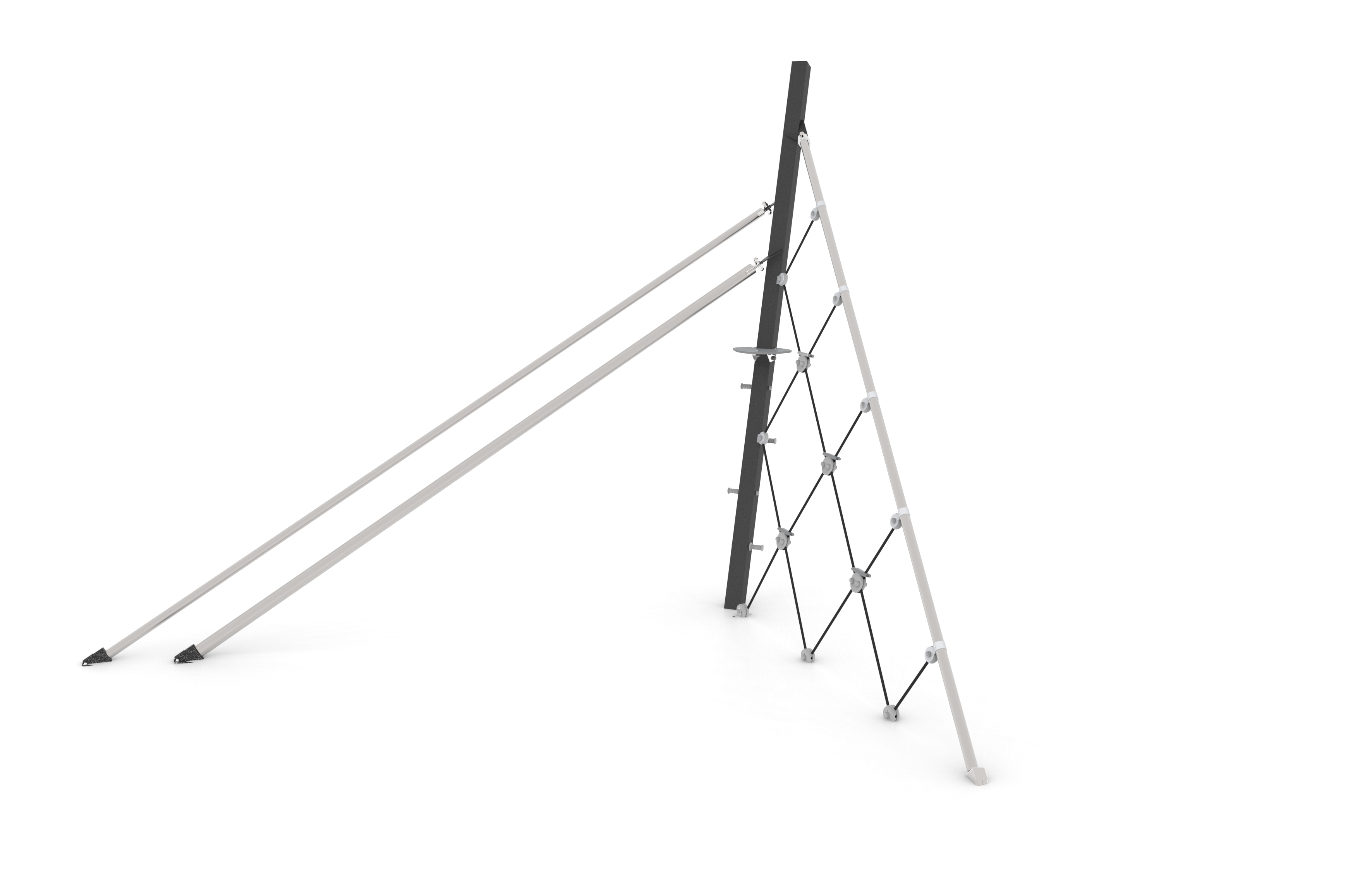 Su estructura es de postes de acero lacado en oxiron gris, atirantada con tubos de acero inoxidable.