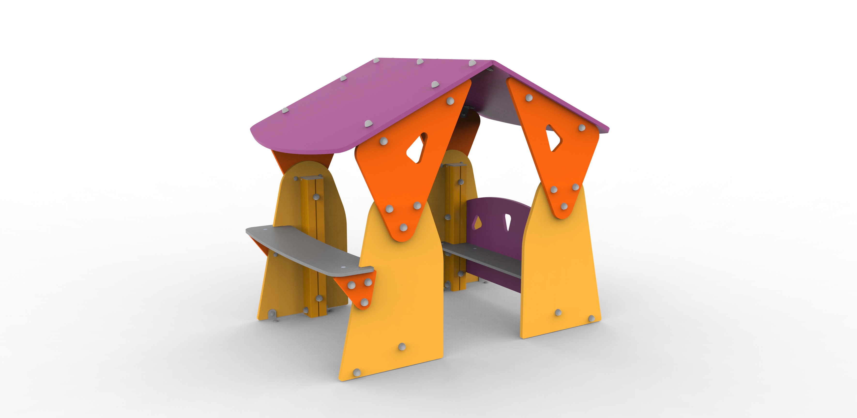 Su diseño se basa en formas elementales (triángulo, círculo y cuadrado), que el niño puede percibir en las construcciones de los juegos.
