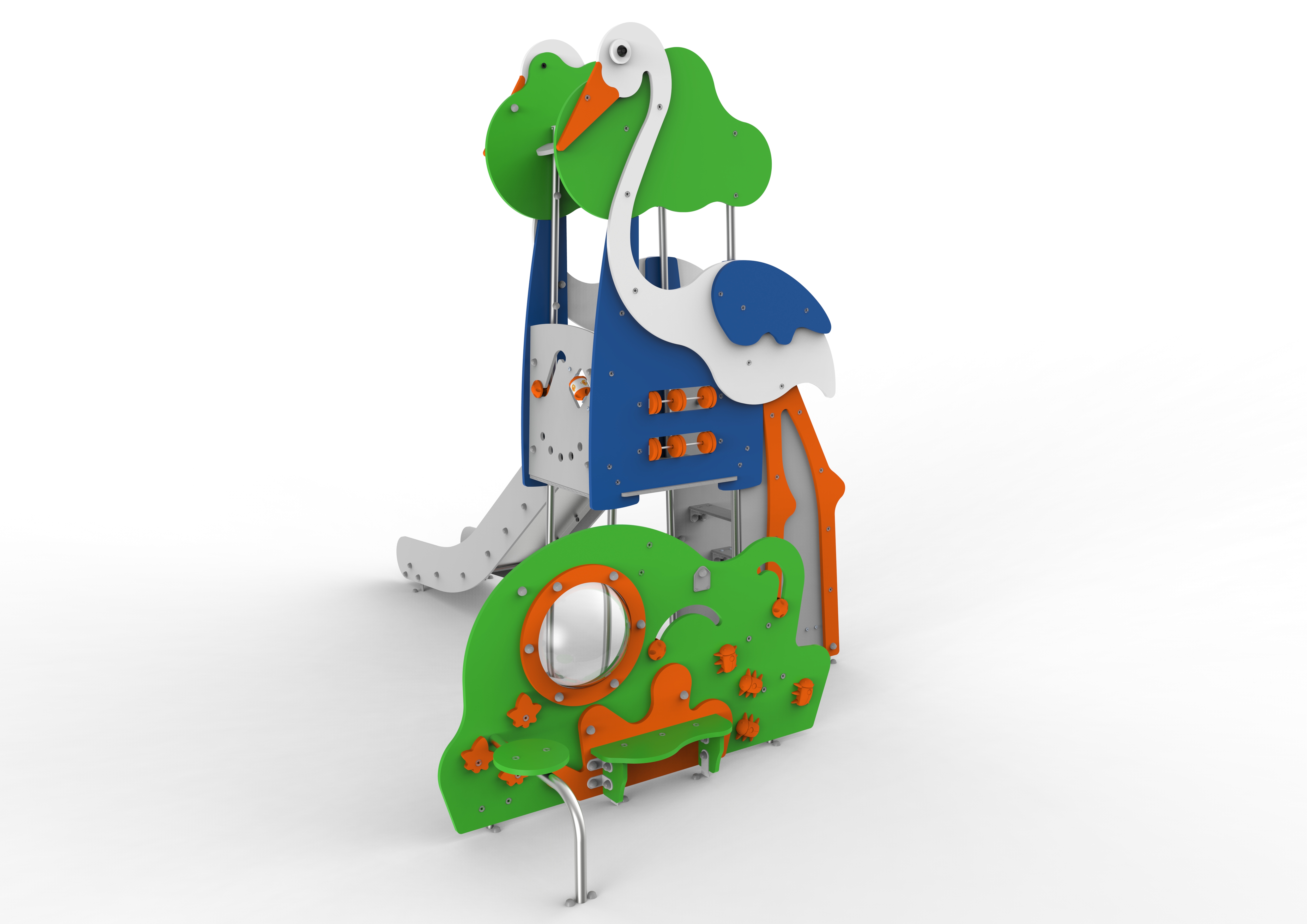 No siempre podemos planificar desde cero un parque ideal. En muchas ocasiones es necesario insertar soluciones atractivas en espacios reducidos, determinados por el desarrollo urbano anterior. Minimalist surge como respuesta a este tipo de situaciones, como prueba de que lo sencillo no tiene por qué estar reñido con lo funcional, y de que resulta posible ofrecer una jugabilidad máxima conjugando con inteligencia pocos elementos. Las escaleras evocan el acceso a un cohete espacial; los paneles se calan para albergar rompecabezas o manipulables; las uniones se convierten en rocódromos y elementos de trepa. Con un diseño armonioso en el que los elementos de juego se yuxtaponen sin anularse y permiten una gran versatilidad de uso. La paleta de colores actúa además como una guía cromática intuitiva que sirve de orientación a los niños: subimos o bajamos por elementos grises; navegamos entre plataformas azules guiados por puntos de apoyo naranjas y blancos; elementos verdes evocan plantas y arbustos. Porque allí donde el espacio trata de limitar el juego, la mejor solución pasa por convertir la estructura en contenido. Además, y como novedad, se dispone de la alternativa de incorporar toboganes de rotomoldeo, en lugar del tradicional tobogán realizado en chapa de inoxidable.