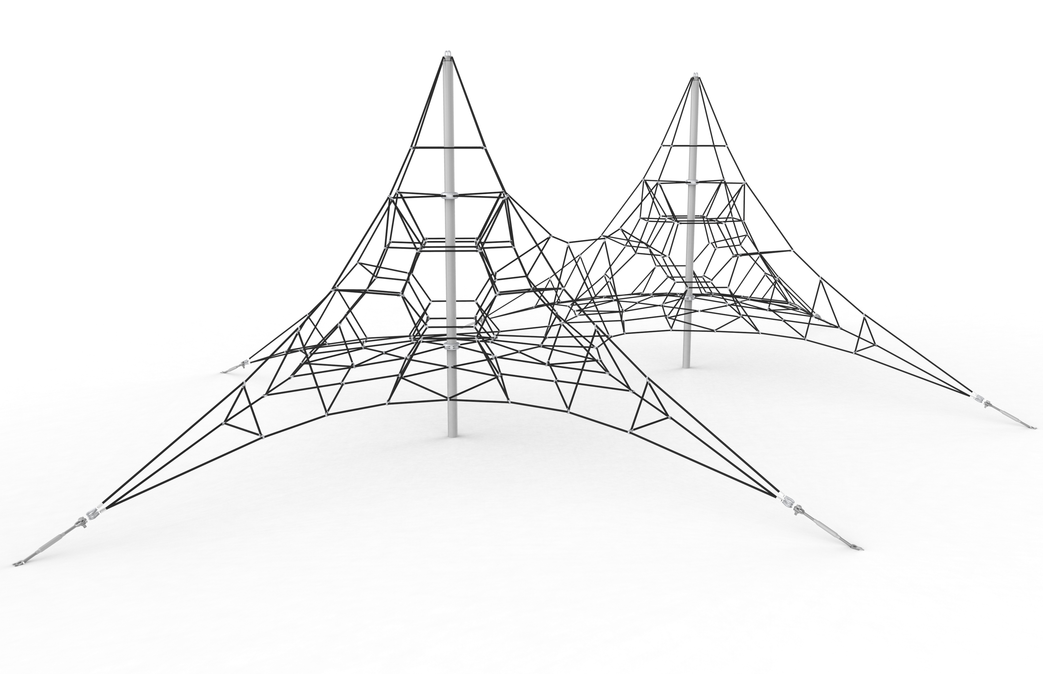 ¿Qué pasaría si le pidiésemos a un ingeniero que nos construyese en 3D el dibujo de un mandala? ¿o que tradujese la forma de un iglú y de una carpa de circo a lenguaje geométrico? Mejor aun, ¿por qué no ser ambiciosos y convertir en permanentes las efímeras telarañas de un conocido superhéroe? Cuando agitamos en una coctelera imaginación, ingeniería y geometría, el resultado es Redes. Nos sentimos orgullosos de nuestro equipo de investigadores que han conseguido que innumerables horas de cálculo de estructuras, de simulaciones de tensión, de diseño de perfiles, pasen inadvertidos para los niños, que solo perciben con asombro la presencia de una arquitectura de ensueño, de laberintos tridimensionales con infinitas entradas y salidas. Las estructuras de acero y las cuerdas de primera calidad garantizan la seguridad de unos módulos pensado para jugar, trepar e inventar nuevos retos. Todo ello con una formas rotundas que se integran en cualquier paisaje urbano y se convierten en un punto de referencia que otorga un nuevo perfil al entorno en el que se instalan. Porque los elementos de Redes ejercen una poderosa atracción: invitan a jugar y a volver a intentarlo otro día, como grandes balizas que lanzan una llamada a la diversión.