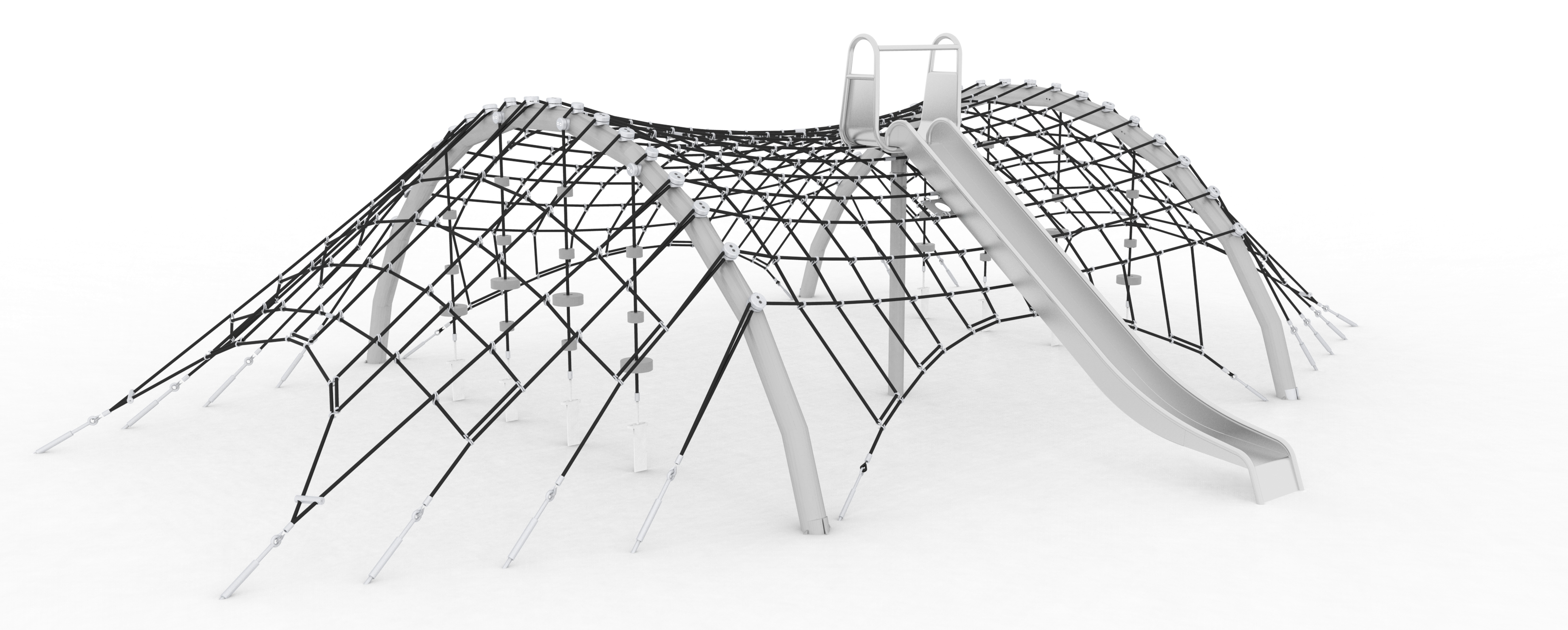 ¿Qué pasaría si le pidiésemos a un ingeniero que nos construyese en 3D el dibujo de un mandala? ¿o que tradujese la forma de un iglú y de una carpa de circo a lenguaje geométrico? Mejor aun, ¿por qué no ser ambiciosos y convertir en permanentes las efímeras telarañas de un conocido superhéroe? Cuando agitamos en una coctelera imaginación, ingeniería y geometría, el resultado es Redes. Nos sentimos orgullosos de nuestro equipo de investigadores que han conseguido que innumerables horas de cálculo de estructuras, de simulaciones de tensión, de diseño de perfiles, pasen inadvertidos para los niños, que solo perciben con asombro la presencia de una arquitectura de ensueño, de laberintos tridimensionales con infinitas entradas y salidas. Las estructuras de acero y las cuerdas de primera calidad garantizan la seguridad de unos módulos pensado para jugar, trepar e inventar nuevos retos. Todo ello con una formas rotundas que se integran en cualquier paisaje urbano y se convierten en un punto de referencia que otorga un nuevo perfil al entorno en el que se instalan. Porque los elementos de Redes ejercen una poderosa atracción: invitan a jugar y a volver a intentarlo otro día, como grandes balizas que lanzan una llamada a la diversión.