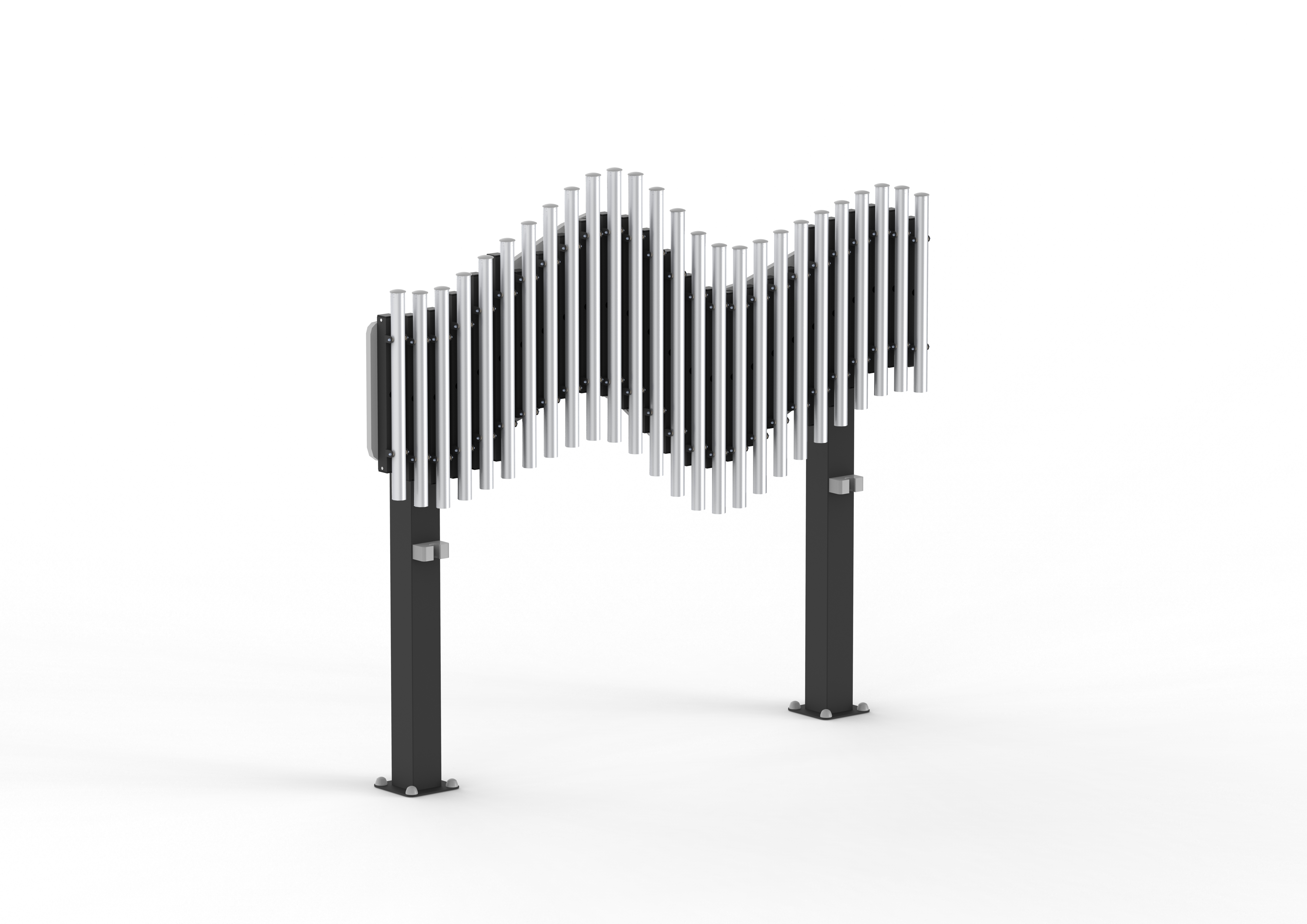 En la gama Creativos, los juegos permiten a los niños ejercitar su creatividad a través del contacto con elementos como el agua, la arena o el sonido. Los juegos de agua invitan a los usuarios a disfrutar con las corrientes y remolinos que forman pequeños cursos de agua que discurren por canales, impulsan hélices, llenan recipientes... Realizados en madera y acero inoxidable, los juegos recuerdan las formas de la minería o los molinos, a la vez que los introducen en las nociones físicas de potencia, presión, velocidad... Los areneros forman un territorio especial en el que el niño, a través de la imaginación, puede jugar a transformar su entorno. Excavar la arena, levantar montañas, construir castillos, trazar circuitos para coches... La arena forma un paisaje cambiante, en dos y tres dimensiones, que el niño modula ejercitando su sentido de la plasticidad, su capacidad motriz y su creatividad. Además, un arenero es siempre un espacio a compartir, un entorno que genera sus propias propuestas de convivencia y juego libre. El ruido de un parque es el sonido de la diversión y de la socialización puestas en marcha pero los elementos musicales representan un reto diferente. El primer golpe en un tambor es una ampliación de esa fabulosa cacofonía. Pero en cuanto esos golpes se dejan guiar por el ritmo, lo que solo era estruendo se convierte de pronto en música. Cada una de las láminas de un xilófono ofrece una nota diferente con las que crear un número infinito de combinaciones. El niño descubre así que también puede “construir” música. Lenguaje a la vez complejo y sumamente sencillo, susceptible de aprendizaje intelectual y elemento innato al ser humano, la música resulta un elemento ideal para fomentar el juego en grupo y la relación entre niños de diferentes edades o capacidades.